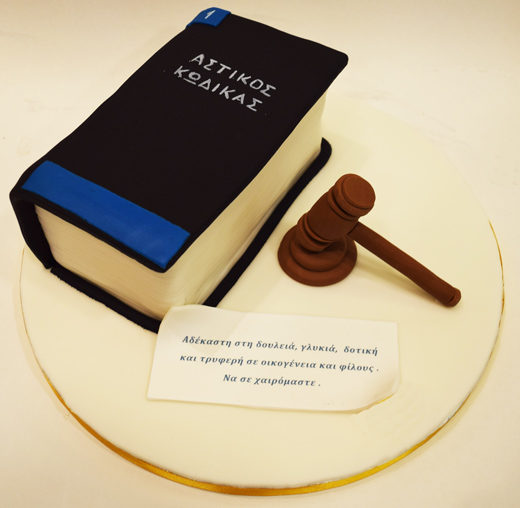 02/11/2016 by mmcake68 likesΓενέθλια, Για ενήλικες, αστικός κώδικας, βιβλίο, δικαστής, σφυρί Τούρτα βιβλίο “Αστικός Κώδικας” για γενέθλια δικαστή