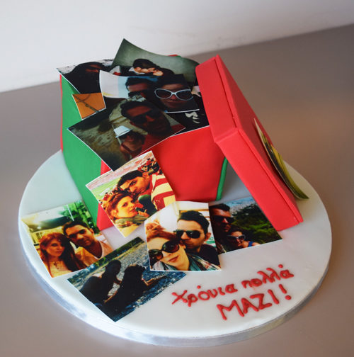 18/01/2016 by mmcake75 likesΓάμος, επέτειος, ζευγάρι, τούρτες για ζευγάρι, φωτογραφία, φωτογραφίες Τούρτα ζευγαριού σε σχέδιο κουτιού με φωτογραφίες. Οι φωτογραφίες τρώγονται φυσικά….