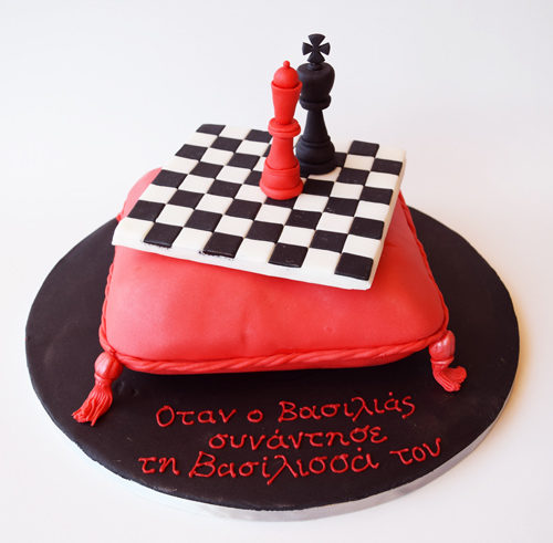 01/11/2016 by mmcake83 likesΓια ενήλικες, βασιλιάς, βασίλισσα, γάμος, επέτειος, μαξιλάρι, πιόνια, σκάκι, σκακιέρα Προτότυπη τούρτα γάμου με σκακιέρα και πιόνια πάνω σε κόκκινο μαξιλάρι