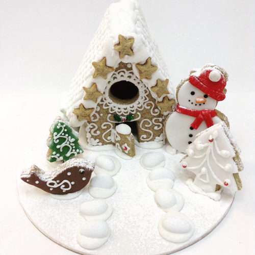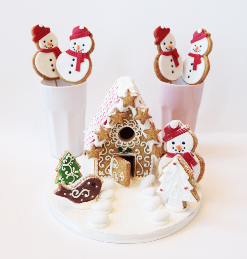 Μπισκοτόσπιτο και μπισκότα για διακόσμηση dessert table χριστουγεννιάτικης βάπτισης