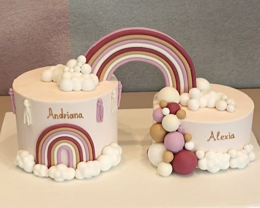 Tούρτα double rainbow , 2 τούρτες που ενώνονται με ενα ουράνιο τόξο . Ιδανική για δίδυμα ή φίλες που κάνουν πάρτυ μαζί !