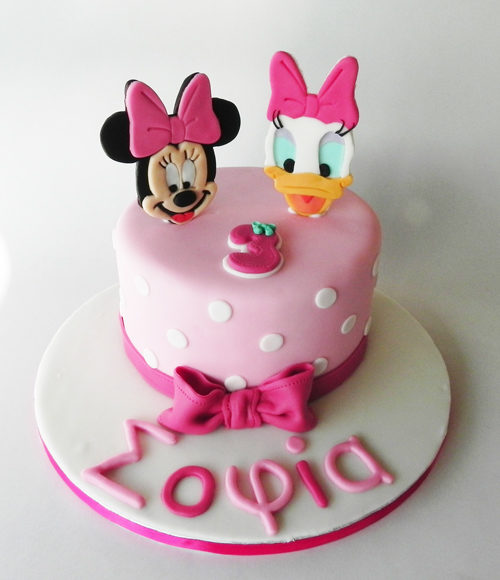 Τούρτα με κεφαλάκια Minnie και Daisy .