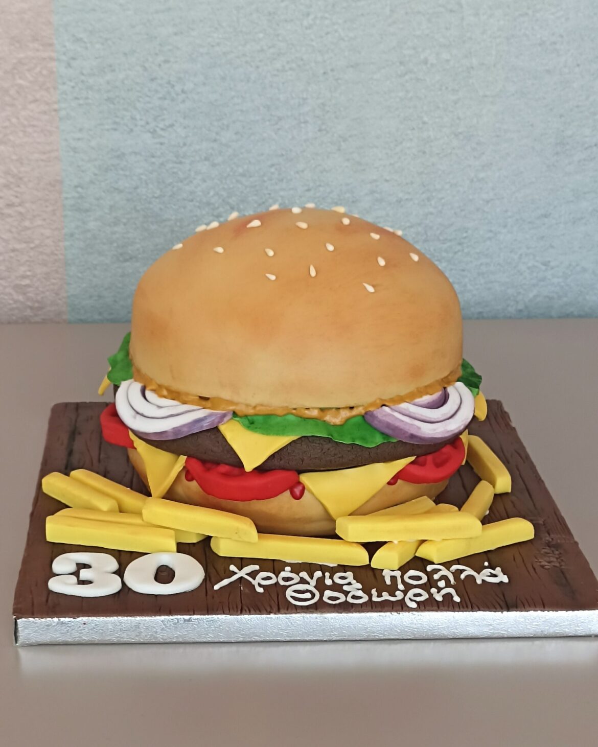 Eνα τεράστιο burger για τους φανατικούς των hamburgers . Με ζουμερό μπ