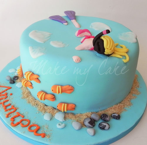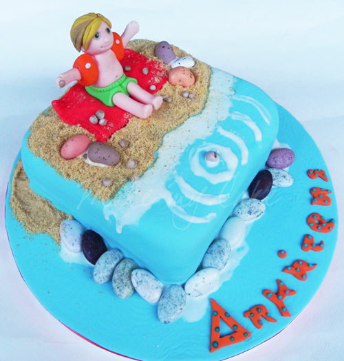 Τούρτα με καλοκαιρινό θέμα: αγοράκι στην παραλία με μαγιό και μπρατσάκ