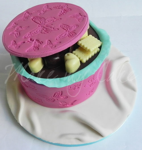 Κουτί με σοκολατάκια. Το κουτί είναι η τούρτα.