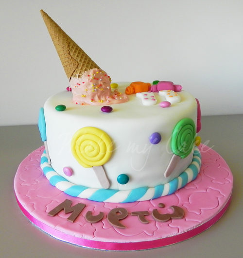 Τούρτες με παγωτό και ζαχαρωτά από ζαχαρόπαστα σε διάφορες παραλλαγές