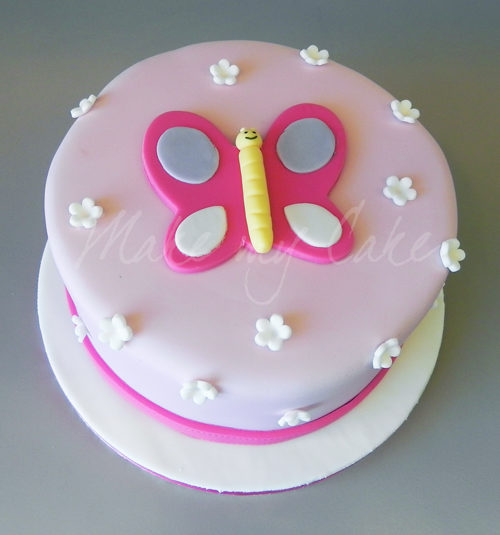 Απλή τουρτίτσα με απλικέ πεταλούδα και λουλούδια