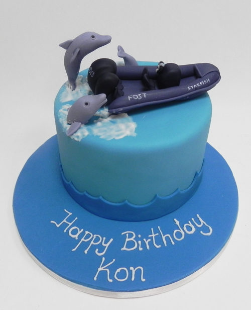 Τούρτα με φοσκωτό σκάφος και δελφίνια στη θάλασσα