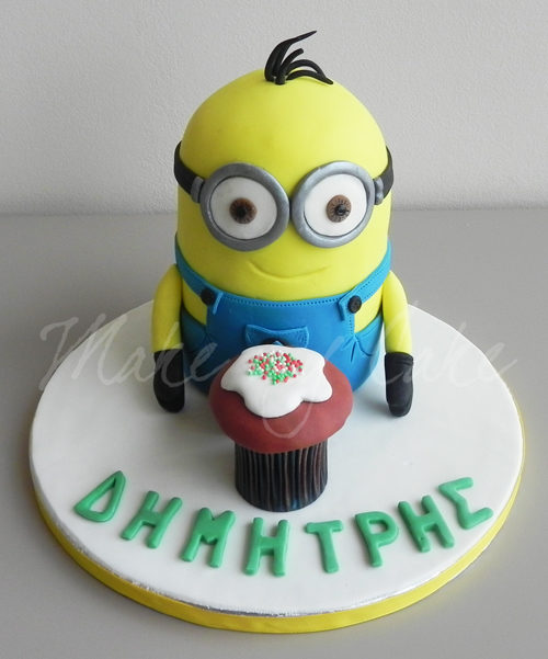 Τούρτα ζαχαρόπαστας minion σε δύο ορόφους