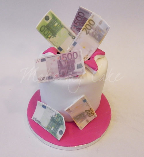 Χαρτονομίσματα ξεπηδούν από μια τούρτα με ζαχαρόπαστα