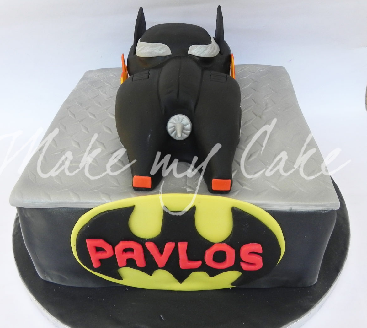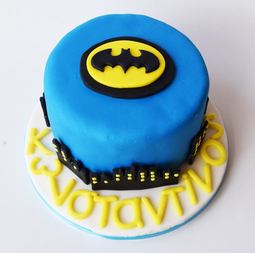 Τούρτα με απλικέ φιγούρα του Βatman από ζαχαρόπαστα .